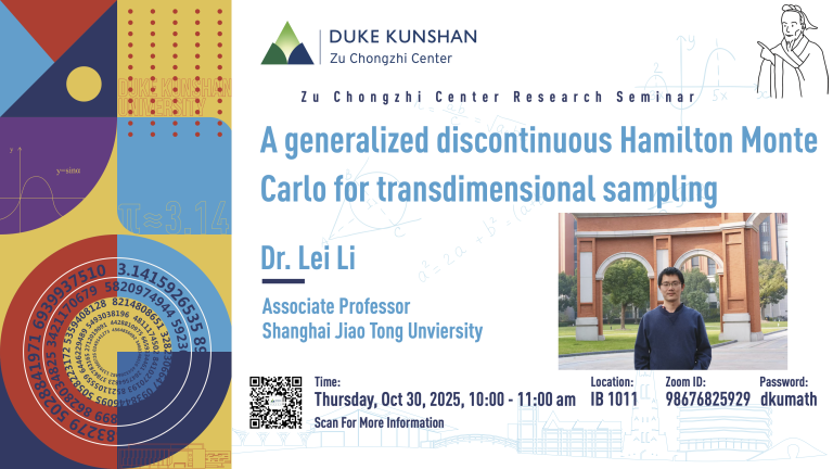 Bio: Lei Li is currently an associate professor in the Institute of Natural Sciences and the School of Mathematical Scieces at Shanghai Jiao Tong Unviersity (SJTU). He obtained his B.S. from Tsinghua University in 2010 and Ph.D. from the University of Wisconsin-Madison in 2015. Then, he was an assistant research professor at Duke University, and joined SJTU in 2018. His main research interest is in applied mathematics, especially designing and analyzing numerical methods for stochastic models arising from physics and data sciences. Currently, he is focusing on simulation methods and sampling algorithms for the interacting particle systems and data science.