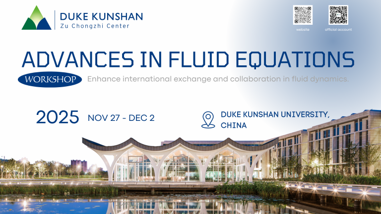 The workshop on Advances in Fluid Equations, organized by the Math Sciences Lab at Zu Chongzhi Center at Duke Kunshan University, will be held from November 27 to December 2, at Duke Kunshan University.