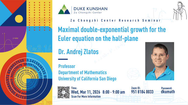 Bio: Andrej Zlatos obtained his PhD. from Caltech in 2003, after which he held faculty positions at the University of Chicago and the University of Wisconsin. Since 2016 he has been a professor at the University of California San Diego. He works in the area of partial differential equations, specializing in fluid dynamics, reaction-diffusion equations, and mixing. He is an author of over 60 mathematical papers, as well as a recipient of the Sloan Fellowship and the Simons Fellowship.