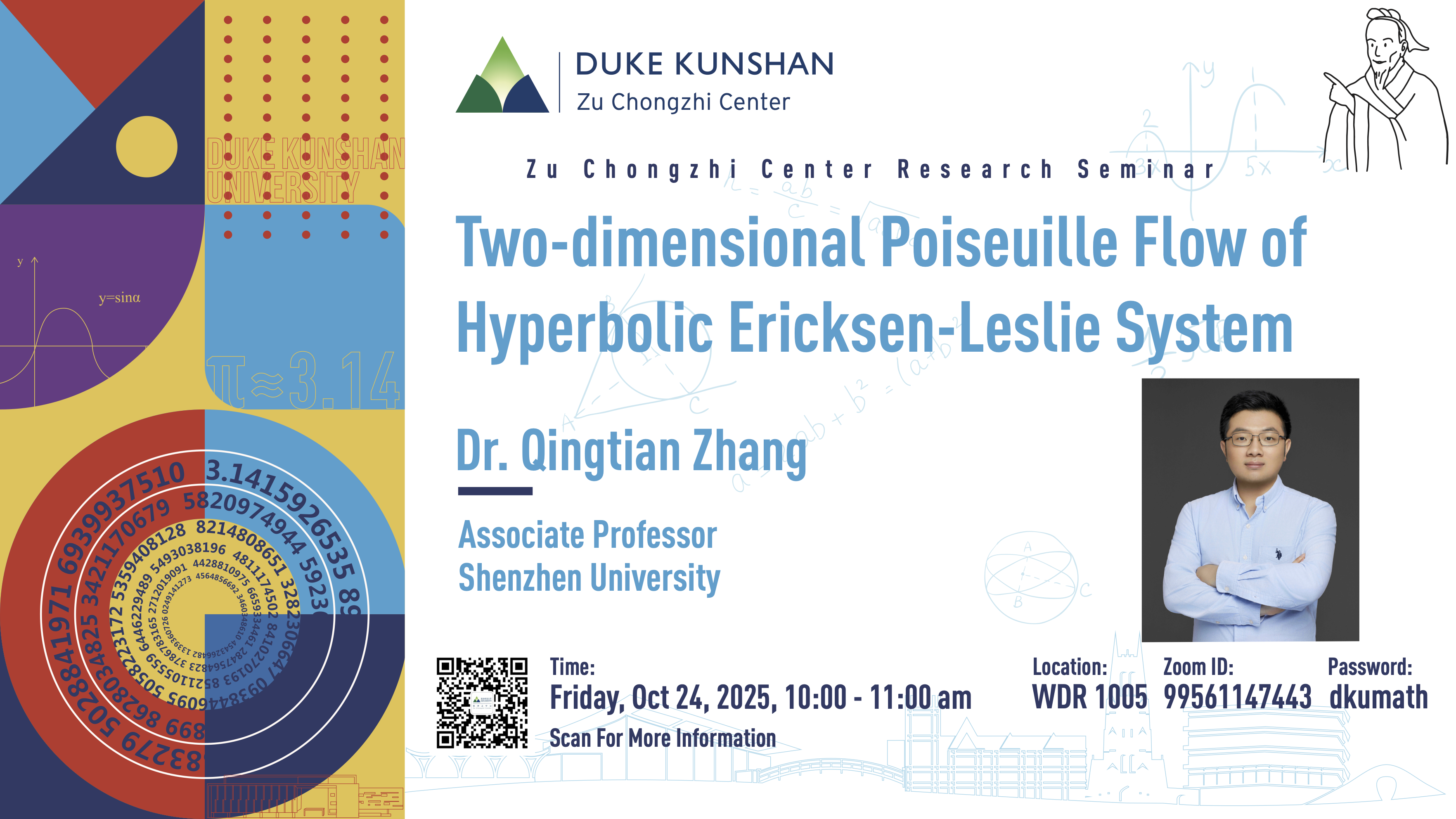 Bio: Dr. Qingtian Zhang graduated from Pennsylvania State University in 2016 with the PhD degree in Applied Math. After that he worked in University of California Davis as a Postdoc and West Virginia University as an assistant professor. He joined Shenzhen University in 2024 as an associate professor. His research interests are mainly on analysis of PDE’s, including hyperbolic conservation laws, dispersive equations and fluid mechanics.