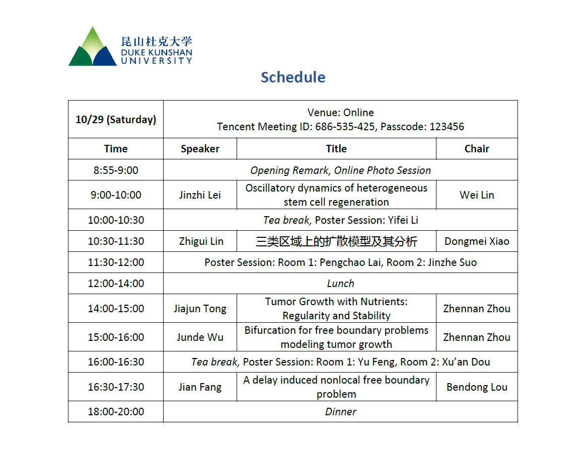 Schedule, titles and abstracts to be downloaded here: New Trends in Mathematical Biology -Duke Kunshan University.